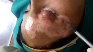 3. A very small piece of normal skin is sufficient to treat large affected area, e.g. 10cm2 of donor skin is enough to treat 100 cm2 of vitligo / leucoderma patches.